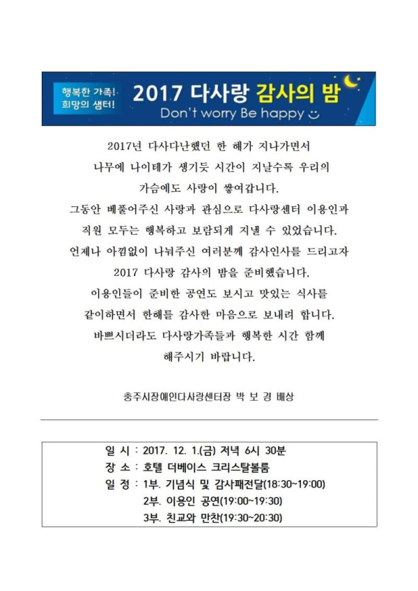 2017년 다사랑 감사의 밤 초대장