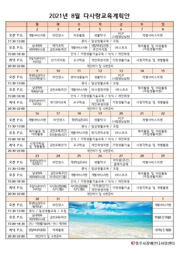 2021년 08월 교육계획안