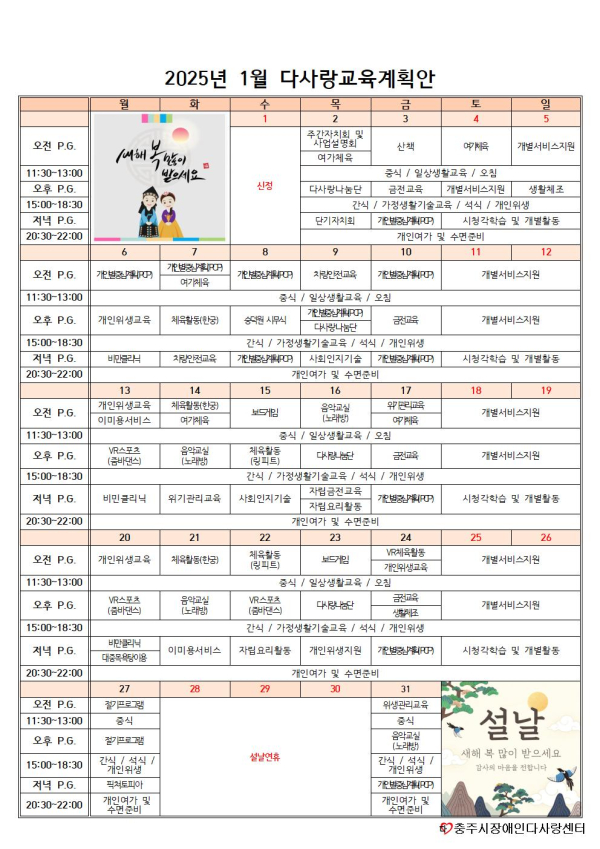 2025년 1월 교육계획안