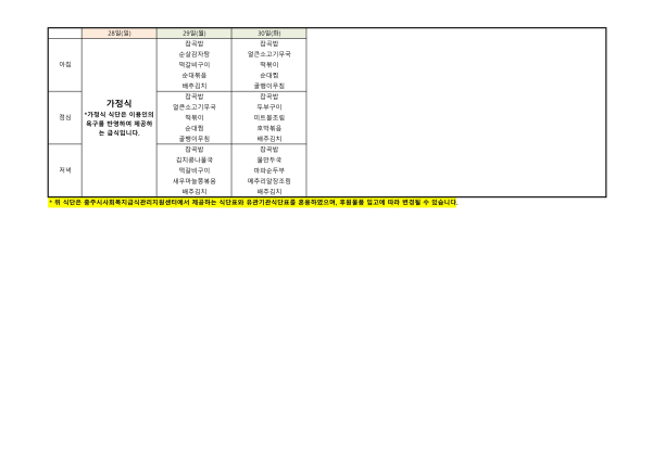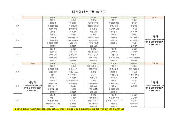 2025년 9월 식단표