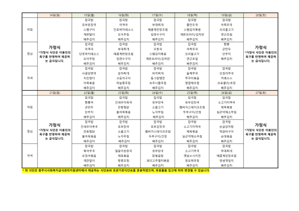 • 식단표