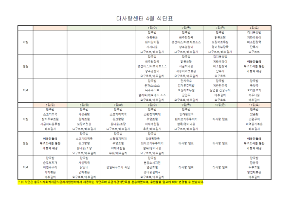 2026년 4월 식단표
