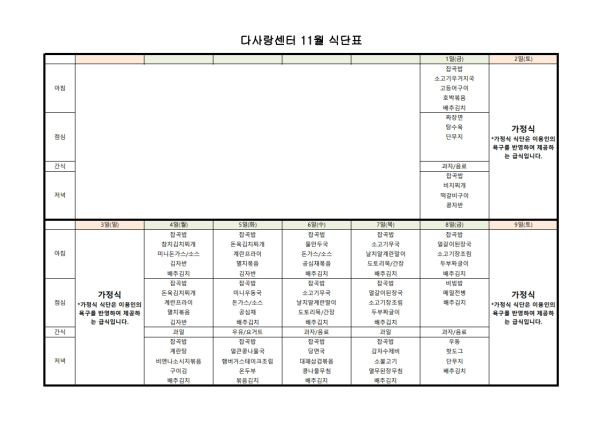 24년 11월 식단표