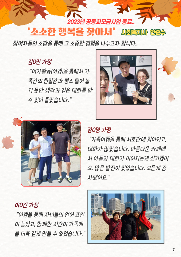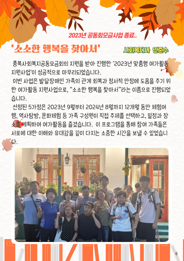 24년 가을호 (vol.53) 다사랑 뉴스레터 페이지 정보 작성자 이재호 작성일24-10-14 10:23 조회698회 댓글0건 관련링크 본문 2024년 3분기 소식지가 발행되었습니다. 항상 따뜻한 관심과 성원을 보내주신 여러분께 감사드립니다. 댓글목록 등록된 댓글이 없습니다. 이전글 다음글 목록