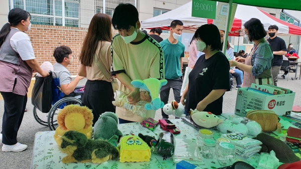 2022.05.30 다사랑바자회 페이지 정보 작성자 이재호 작성일22-06-01 01:18 조회1,150회 댓글0건 관련링크 본문 2022.05.30. 다사랑바자회이용인들의 일상생활 능력 향상을 위해 바지회를 진행했습니다.저희 센터뿐만아니라 다모아와 다누리센터에서도 오셔서 행사를 즐기고 가셨습니다.이번 바자회에서 이용인들이 직접 물건을 팔고 사보면서 즐겁게 행사에 참여하는 모습을 보니 직원들 모두 기분이 좋았습니다.앞으로도 다양한 활동을 통해 이용인들의 일상생활 능력이 향상될수있도록 노력하겠습니다. 댓글목록 등록된 댓글이 없습니다. 이전글 다음글 목록