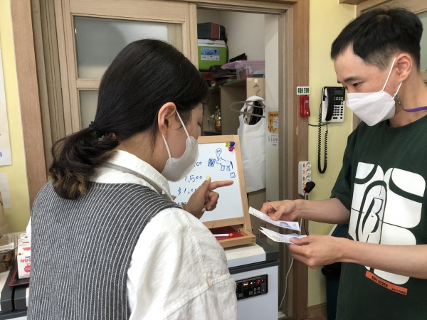 2022.05.10 금전교육 페이지 정보 작성자 이재호 작성일22-05-15 01:51 조회984회 댓글0건 관련링크 본문 센터 내에서 먹을 간식을 모형 화폐를 이용해 구입해보았습니다. ^^ 다음에는 직접 밖으로 나가 간식을 구입해보겠습니다. ^^ 댓글목록 등록된 댓글이 없습니다. 이전글 다음글 목록