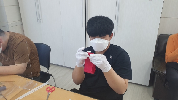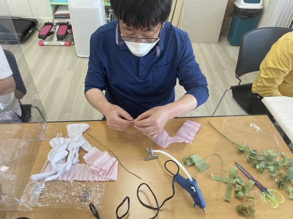 2022.05.06 어버이날 행사(페이퍼플라워) 페이지 정보 작성자 이재호 작성일22-05-07 23:15 조회1,066회 댓글0건 관련링크 본문 2022.05.06 어버이날 행사(페이퍼플라워) 어버이날을 맞아 페이퍼플라워 프로그램을 진행했습니다. 직접 꽃을 만들어 부모님들에게 가져다 줄 생각을 해서 인지 이용인들 모두 평소보다 더 열심히 프로그램에 참여했습니다. ^^ 이용인들 모두 마지막 완성된 꽃을 보며 무척 뿌듯해 하고 즐거운 모습을 보였습니다. 평소보다 긴 시간 동안 진행된 프로그램에도 이용인 분들의 정성이 온전히 꽃에 들어갈 수 있도록 옆에서 힘써 주신 강사 선생님 분들과 직원 분들도 모두 고생 많으셨습니다. ~ ^^ 댓글목록 등록된 댓글이 없습니다. 이전글 다음글 목록