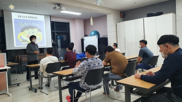 2022.02.15. 단기보호 성교육 페이지 정보 작성자 이재호 작성일22-02-15 20:23 조회960회 댓글0건 관련링크 본문 1분기 단기보호 이용인 성교육을 실시하였습니다. 퇴근 후 단기보호 이용인들이 다목적실에 모여 실시하였으며, '너와 나', '다름과 차이'를 중심으로 하여 인권을 알아보고 이에 따른 성교육을 실시하였습니다. 댓글목록 등록된 댓글이 없습니다. 이전글 다음글 목록