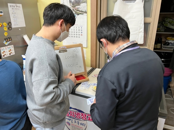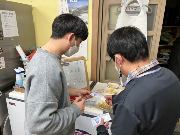 2022. 01. 04. 금전교육 페이지 정보 작성자 김영주 작성일22-01-05 13:20 조회1,159회 댓글0건 관련링크 본문 금전교육을 지도하였습니다. 우선적으로 화폐를 사용하여 물품을 구입해보았습니다. 실전에서는 그룹으로 나갈 수 있도록 하며 직접 구매할 수 있도록 지원할 계획입니다.외부 활동이나 외출을 할 때 물건을 사고 싶을 때 스스로 구입할 수 있도록 교육하며 자립적으로 생활할 수 있도록 지원하도록 하겠습니다^^ 댓글목록 등록된 댓글이 없습니다. 이전글 다음글 목록