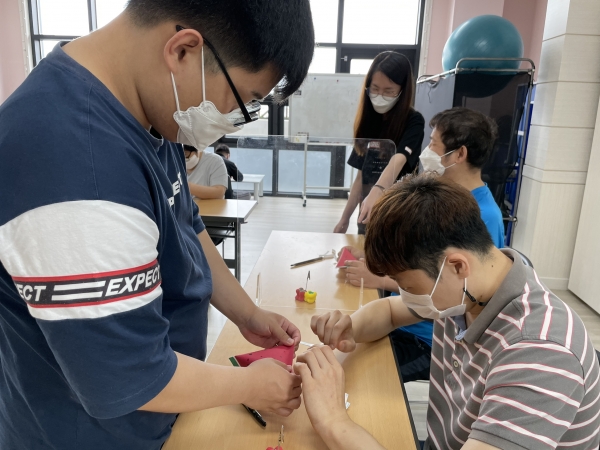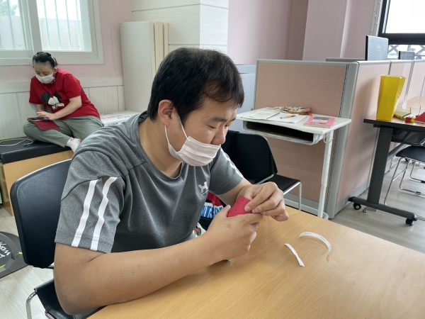 2021. 07. 09. 클레이공예 페이지 정보 작성자 이하영 작성일21-07-09 14:06 조회1,735회 댓글0건 관련링크 본문 클레이공예 프로그램을 진행하였습니다.금일은 파프리카 메모꽃이, 수박 케이크를 만들었습니다.색종이와 클레이점토를 활용하여 소근육 발달을 위한 만들기 활동을 하였습니다.예쁜 색감으로 만드니 눈으로 보았을 때도 즐거움이 더해지는 느낌입니다^^최선을 다하는 다사랑센터 이용인들이었습니다. 댓글목록 등록된 댓글이 없습니다. 이전글 다음글 목록