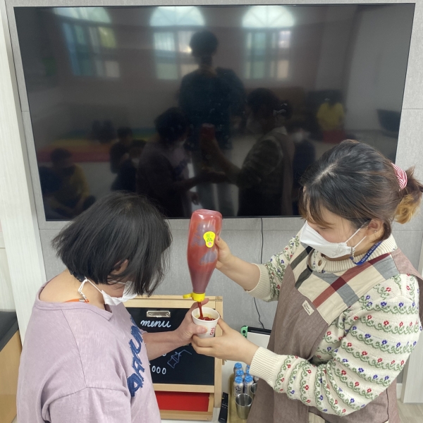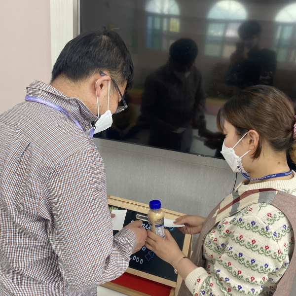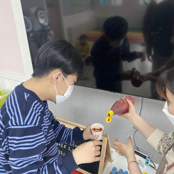 금전교육 페이지 정보 작성자 이하영 작성일21-05-28 17:41 조회1,883회 댓글0건 관련링크 본문 2021. 05. 25. 금전교육맛있는 간식시간에 직접 화폐를 사용하여 구매할 수 있도록 지도하였습니다.2,000원 단위로 구매를 하며 종류가 많아져도 알맞게 구매할 수 있었습니다.다음에는 더 다양한 물품과 음식으로 제공해보도록 하겠습니다^^ 댓글목록 등록된 댓글이 없습니다. 이전글 다음글 목록
