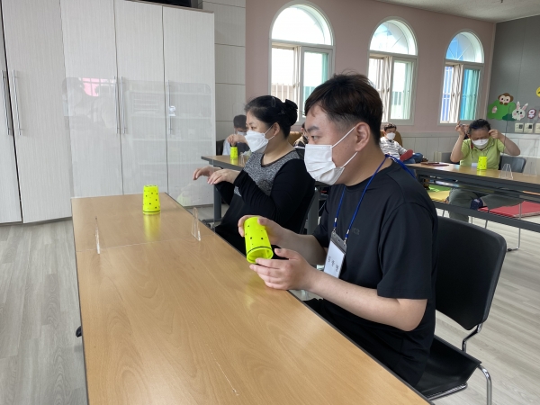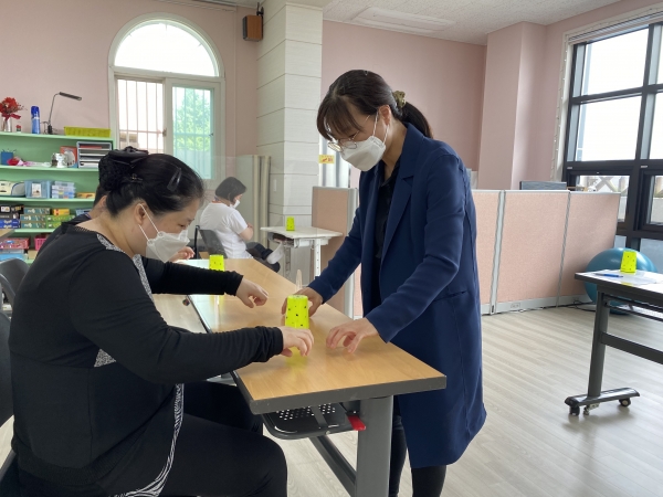 2021. 06. 01. 컵타교실 페이지 정보 작성자 이하영 작성일21-06-03 10:48 조회1,859회 댓글0건 관련링크 본문 충주시평생학습관과 연계하여 컵타 프로그램을 진행하였습니다. 음악에 맞추어 읍, 피, 바, 라 동작을 익혀 수행하는 우리 다사랑센터 이용인들 점점 실력이 늘어가는 것이 보이네요^^ 댓글목록 등록된 댓글이 없습니다. 이전글 다음글 목록