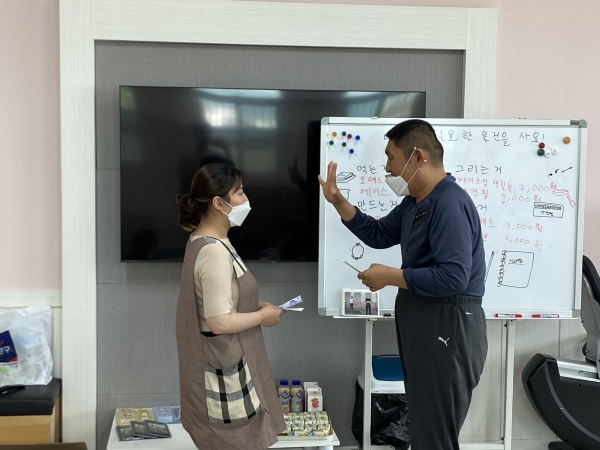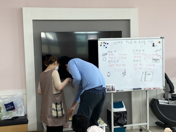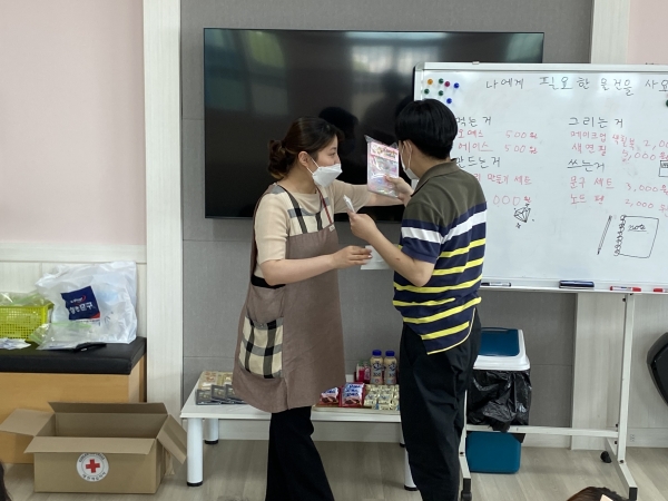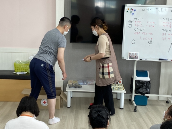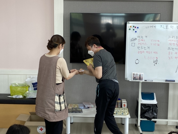 2021. 06. 01. 금전교육 페이지 정보 작성자 이하영 작성일21-06-03 10:51 조회1,916회 댓글0건 관련링크 본문 금전교육을 실시하였습니다. 이용인들의 욕구사항을 반영하여 물건을 구입하였습니다.금액에 알맞은 화폐로 교환하는 방법을 교육하였습니다. 댓글목록 등록된 댓글이 없습니다. 이전글 다음글 목록