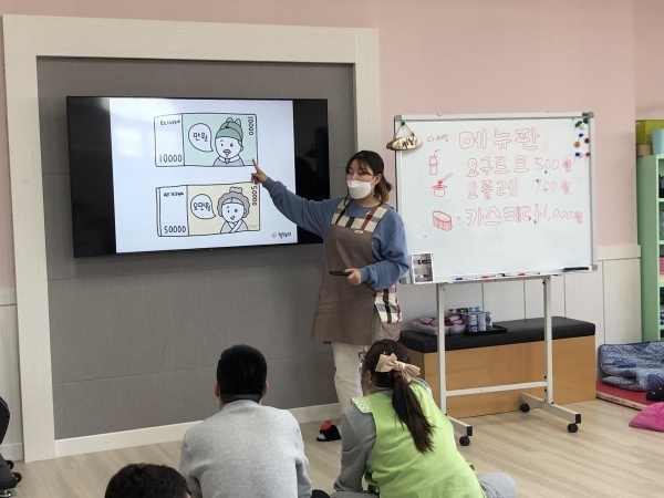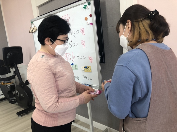 2021. 03. 16. 금전교육 페이지 정보 작성자 이하영 작성일21-05-21 12:36 조회1,665회 댓글0건 관련링크 본문 2021년 03월 16일금전교육을 실시하였습니다.1,000원으로 요구르트, 요플레, 카스타드를 구입하여 간식으로 섭취할 수 있도록 하였습니다.센터 내에서 이용인분들이 화폐에 금액을 알아보았으며,화폐 안에 있는 인물에 대해서도 공부하였습니다^^ 댓글목록 등록된 댓글이 없습니다. 이전글 다음글 목록