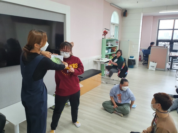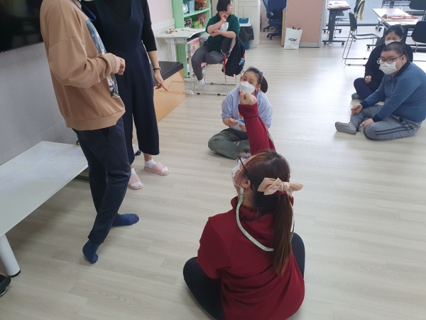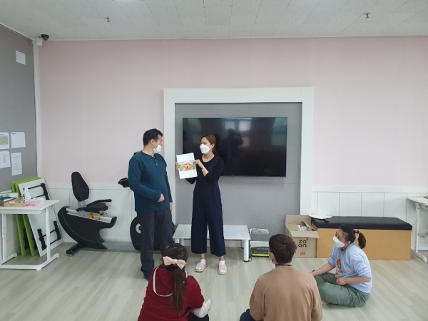 2021. 04. 27. 의사결정지원 페이지 정보 작성자 석가현 작성일21-05-21 11:16 조회1,859회 댓글0건 관련링크 본문 오늘의 의사결정지원 프로그램 주제는 동물, 사물, 음식을 보고 표현하기 입니다.연습으로 동물, 사물, 음식의 특징에 대해 이야기를 해보는시간을 가졌습니다.연습이 끝나고 한명씩 몸 또는 소리를 이용해 문제를 내고,문제를 맞춰보며 즐거운 게임을 해보았습니다. 댓글목록 등록된 댓글이 없습니다. 이전글 다음글 목록