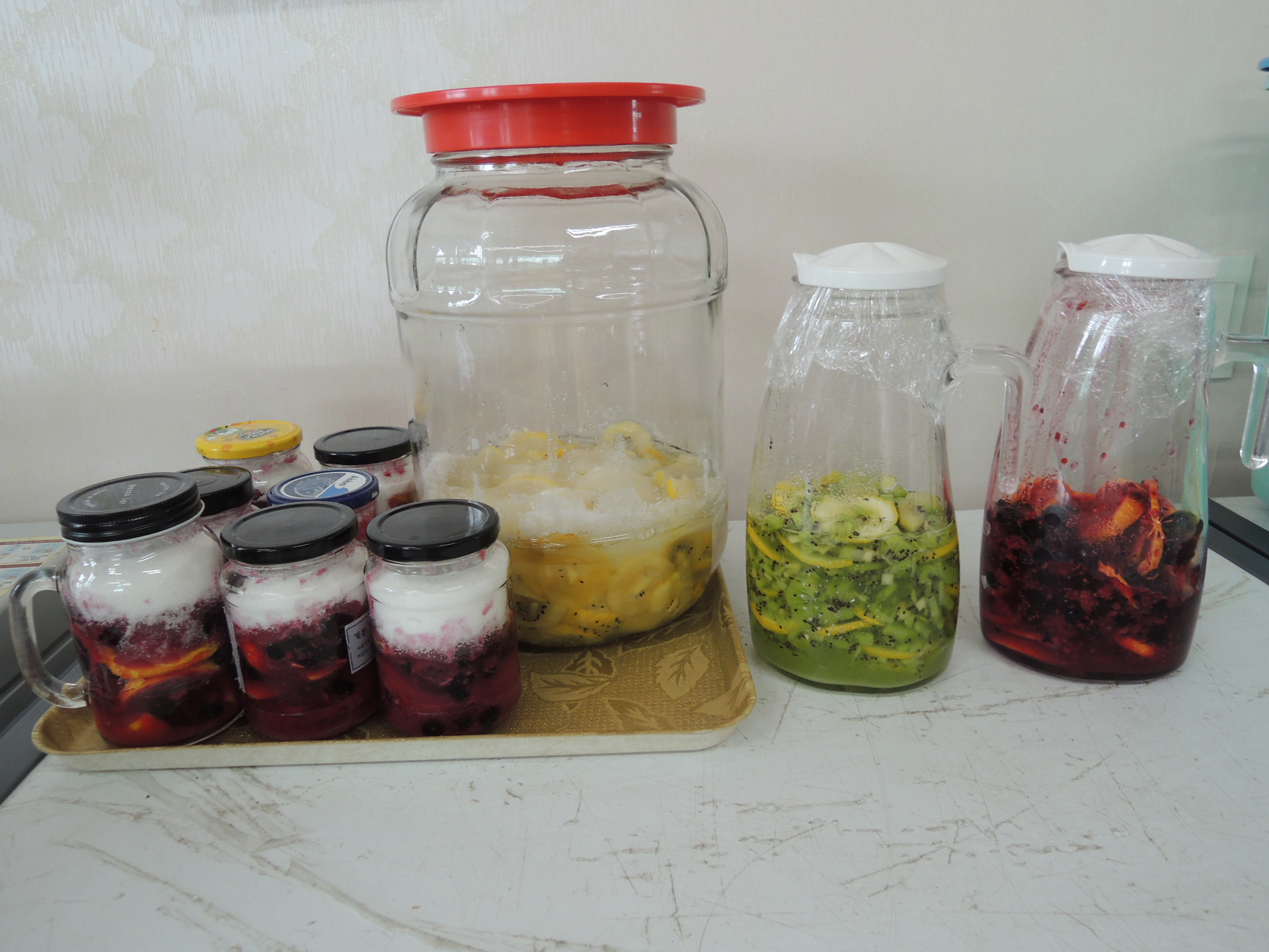 직접 과일을 씻고, 닦고, 썰고, 손가락 쪽쪽 빨아가며 설탕에 버물버물
