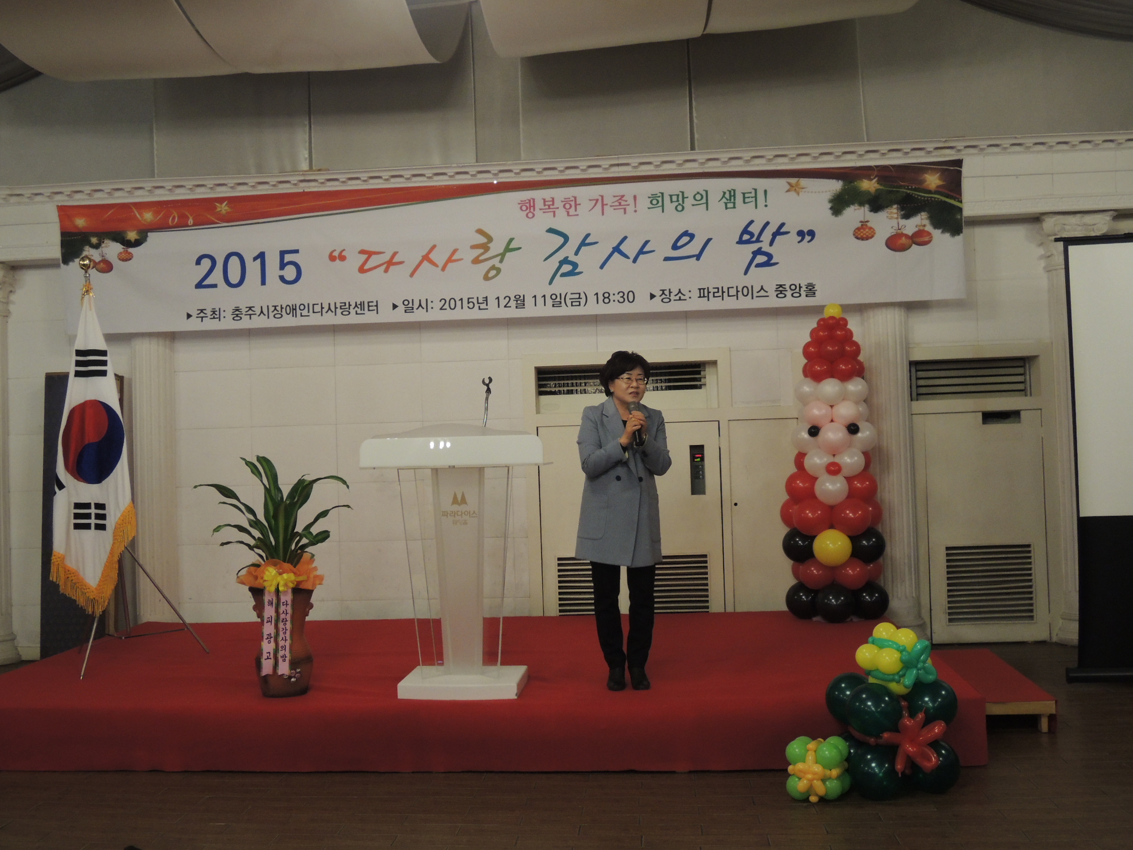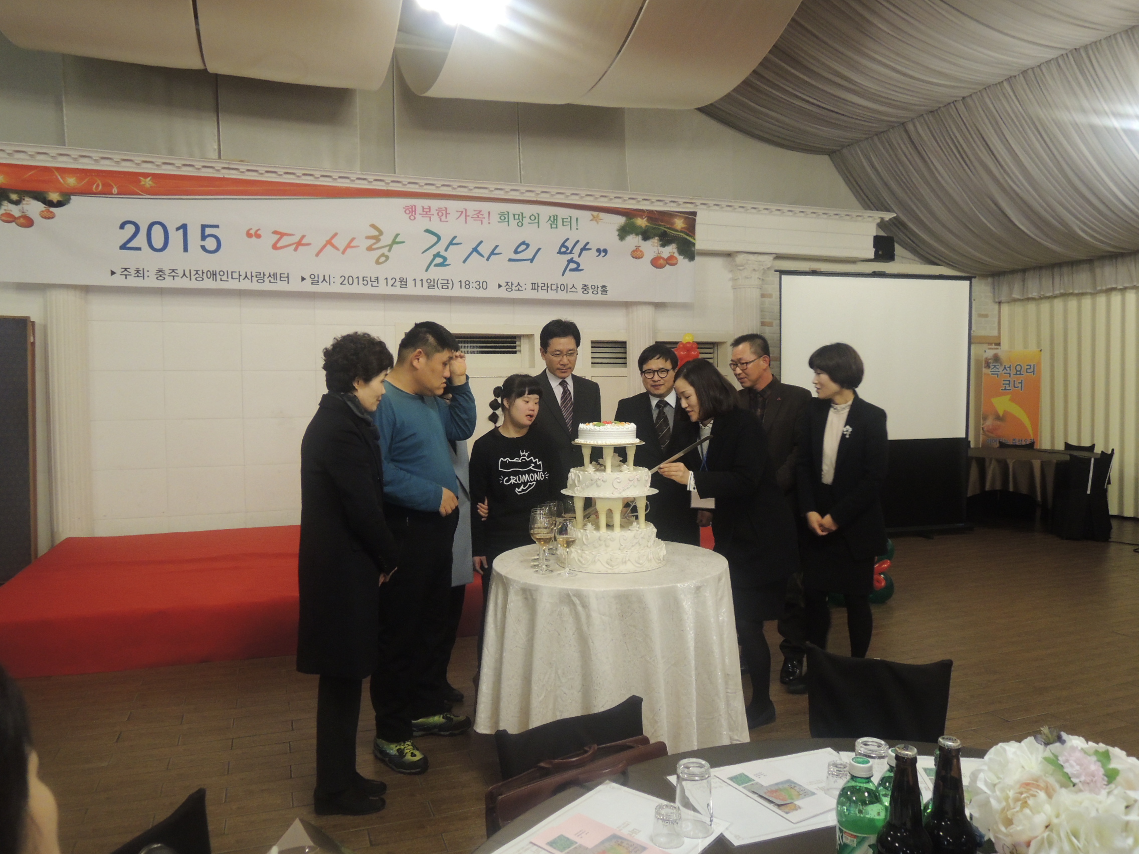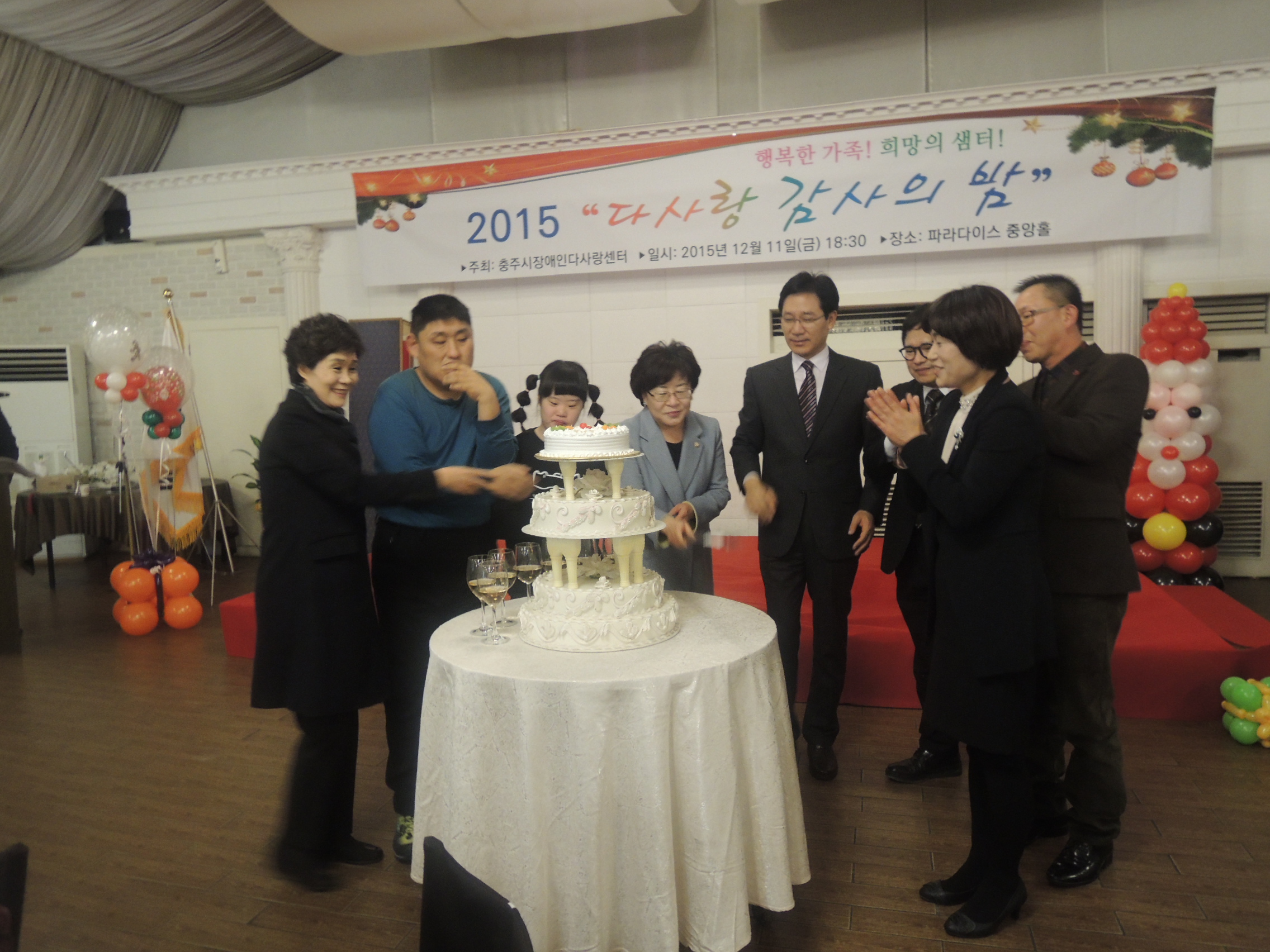 2015년 12월 11일(금) 파라다이스웨딩홀 중앙홀에서 충주시장애인다사랑센터에서 주최한 "2015년 다사랑 감사의 밤"이 진행되었습니다.
