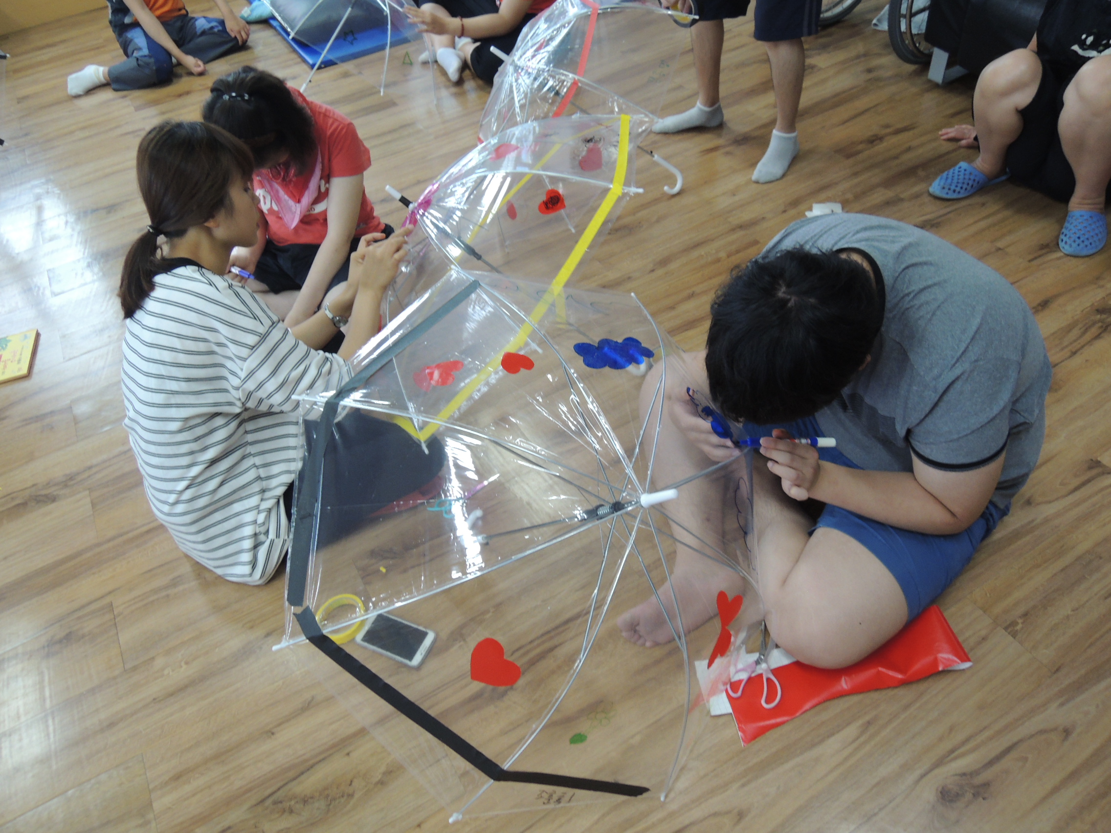 15.08.25. 우산만들기 페이지 정보 작성자 심언석 작성일15-08-27 08:36 조회1,949회 댓글1건 관련링크 본문 태풍 고니가 올라왔던 25일 오후, 우리 다사랑친구들이 여름에 직접 쓰고다닐 우산을 꾸며보는 시간을 가졌답니다.비바람이 몰아치면......음......안되겠지만, 예쁘게 꾸민 우산을 보면 분명 비바람도 피해갈꺼에요^^ 댓글목록 한금희님의 댓글 한금희 작성일 15-08-28 09:53 다사랑 친구들이 만든 우산이 정말 이쁘네요~~^^ 다사랑 친구들이 만든 우산이 정말 이쁘네요~~^^ 이전글 다음글 목록