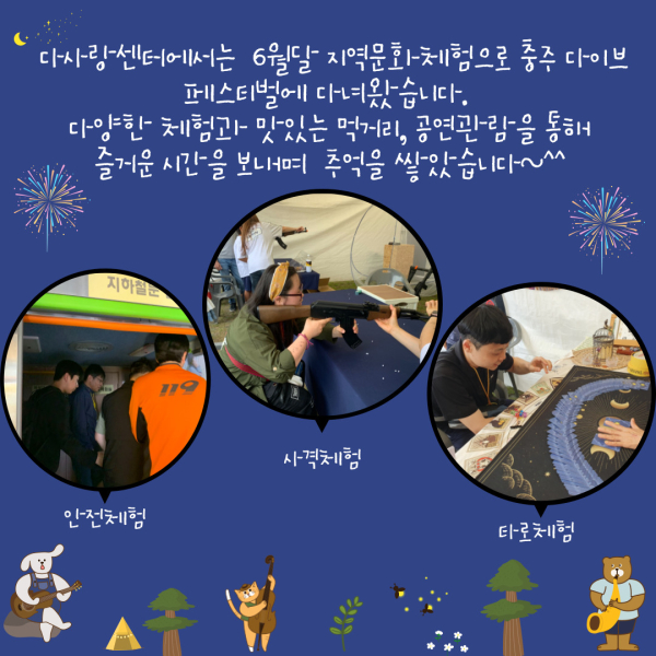 6월 주말여가지원사업(지역문화체험) 페이지 정보 작성자 유다솜 작성일24-06-06 16:22 조회1,187회 댓글0건 관련링크 본문 댓글목록 등록된 댓글이 없습니다. 이전글 다음글 목록