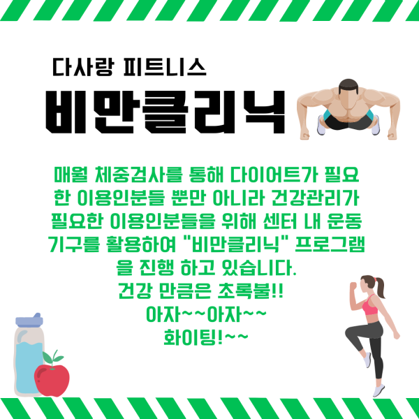 2024. 8. 12.(월) 비만클리닉 페이지 정보 작성자 최월순 작성일24-08-14 17:40 조회728회 댓글0건 관련링크 본문 더운 여름을 이기는 방법 운동하고 땀을 흘려봐요~개운함으로 더위를 잊을 수 있을 거예요!!!다사랑 이용인분들을 위한 비만클리닉 프로그램 입니다. 체지방 감소를 목표로 열심히 ~열심히~~!! 댓글목록 등록된 댓글이 없습니다. 이전글 다음글 목록