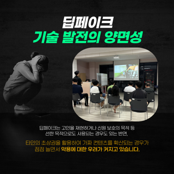 디지털피해예방교육(딥페이크) 9.25 페이지 정보 작성자 이재호 작성일24-09-29 16:48 조회641회 댓글0건 관련링크 본문 디지털피해예방교육(딥페이크) 9.25 댓글목록 등록된 댓글이 없습니다. 이전글 다음글 목록