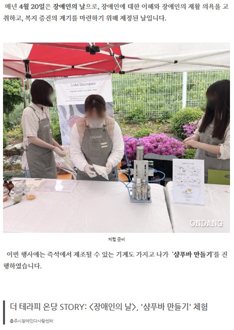 온당 STORY: <장애인의 날>, 충주시장애인다사랑센터 ' 샴푸바 만들기' 체험