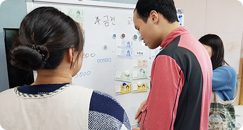 | 금전교육 | 월1회 | 동영상및실물을통해금전과물건구매행위의기본에대해배우고적용해본다. | ||