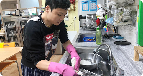 | 가정생활기술 | 매일 수시 | 양치지도, 식사지도, 복약지도 및빨래돌리기, 개기등가정생활에필요한기술교육/훈련 |