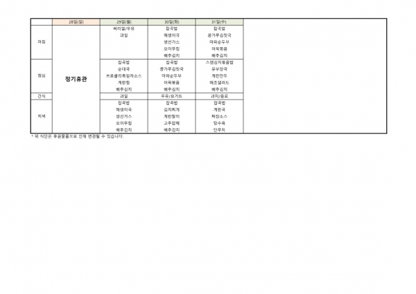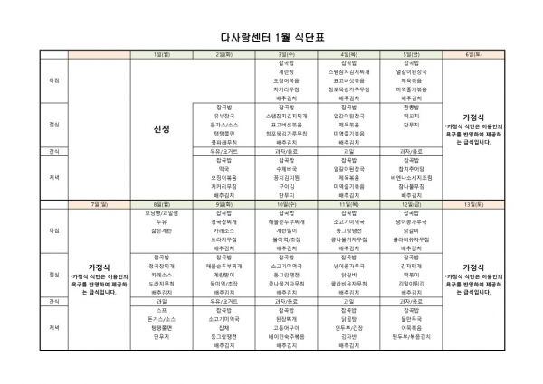 24년 1월 식단표