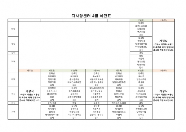 22년 4월 식단표