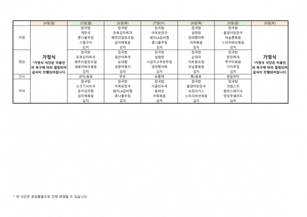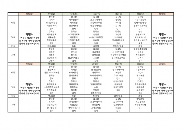 • 식단표