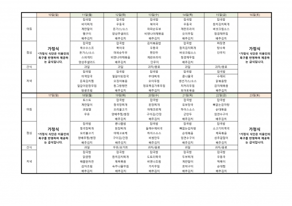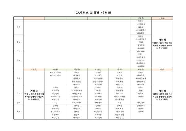 23년 9월 식단표