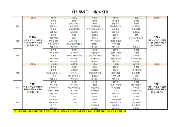 2025년 11월 식단표