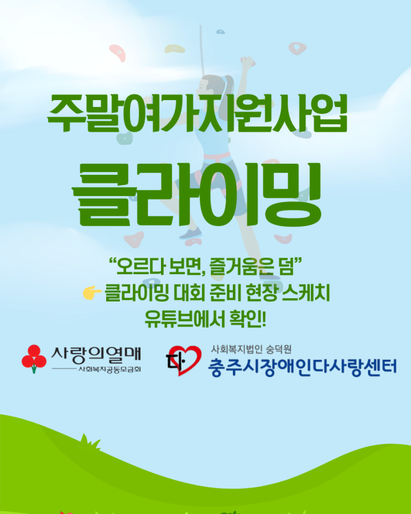 주말여가지원사업-클라이밍대회준비 페이지 정보 작성자 류지연 작성일25-08-26 13:22 조회327회 댓글0건 관련링크 본문 Responsive YouTube Embed 댓글목록 등록된 댓글이 없습니다. 이전글 다음글 목록