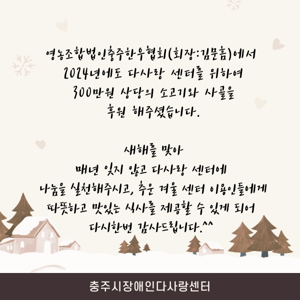 영농조합법인 충주한우협회 소고기 후원 페이지 정보 작성자 이하영 작성일24-02-01 17:10 조회911회 댓글0건 관련링크 본문 댓글목록 등록된 댓글이 없습니다. 이전글 다음글 목록