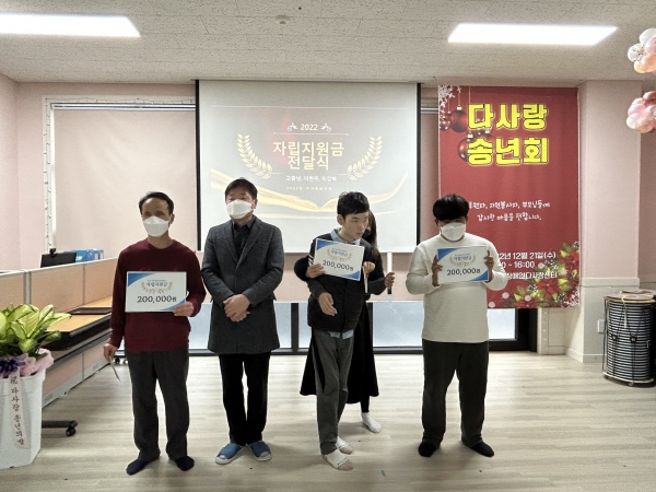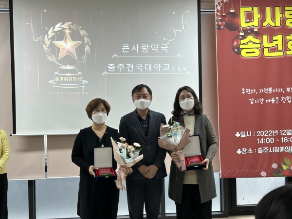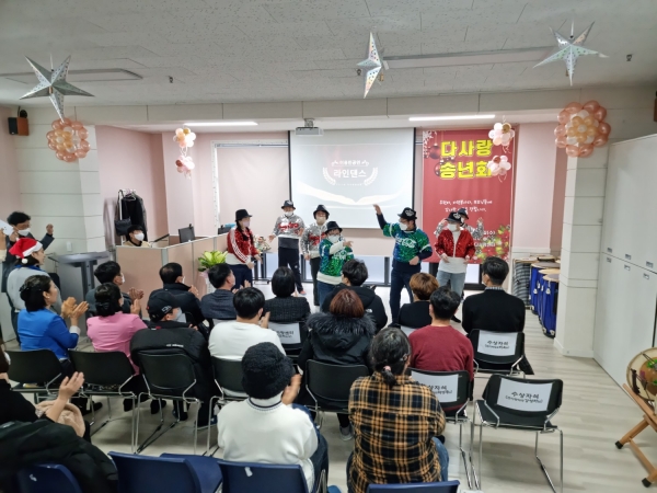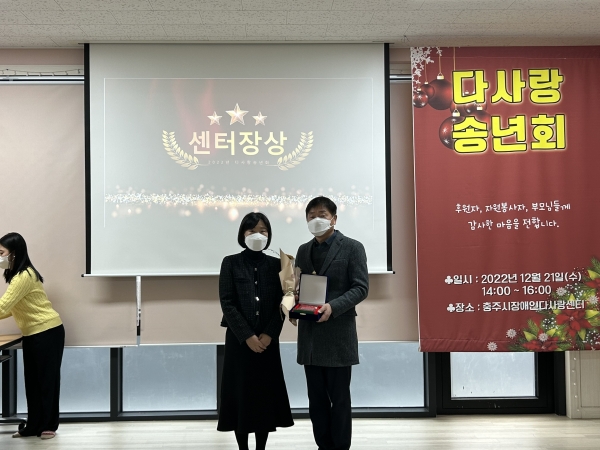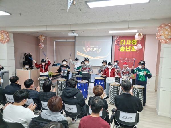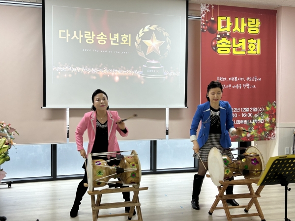 2022. 12. 21. 다사랑 송년회 페이지 정보 작성자 이하영 작성일22-12-21 18:26 조회956회 댓글0건 관련링크 본문 다사랑센터에서는 다사랑 송년회를 진행하였습니다. 장구공연으로는 이명옥 외 1명, 이용인 공연으로는 라인댄스, 음악난타를 진행하였습니다. 자립지원금 고**, 이**, 이** 이용인이 수상하였으며, 오라클피부과(국회의원상), 큰사랑 약국, 충주건국대학교 간호부(운영위원장상), 함지박, 충주시평생학습관(센터장상), 김인호위원(감사패) 전달하였습니다. 바쁘신 와중에도 귀한 발걸음 해주신 분들께 감사인사를 전합니다.^^ 댓글목록 등록된 댓글이 없습니다. 이전글 다음글 목록