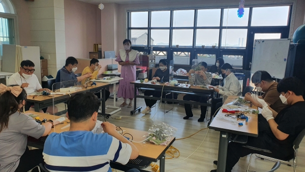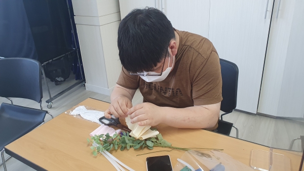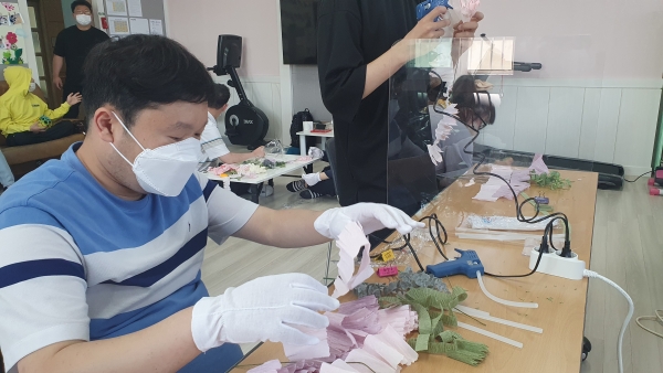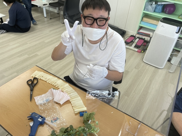 2022.05.06 어버이날 행사(페이퍼플라워) 페이지 정보 작성자 이재호 작성일22-05-07 23:15 조회1,090회 댓글0건 관련링크 본문 2022.05.06 어버이날 행사(페이퍼플라워) 어버이날을 맞아 페이퍼플라워 프로그램을 진행했습니다. 직접 꽃을 만들어 부모님들에게 가져다 줄 생각을 해서 인지 이용인들 모두 평소보다 더 열심히 프로그램에 참여했습니다. ^^ 이용인들 모두 마지막 완성된 꽃을 보며 무척 뿌듯해 하고 즐거운 모습을 보였습니다. 평소보다 긴 시간 동안 진행된 프로그램에도 이용인 분들의 정성이 온전히 꽃에 들어갈 수 있도록 옆에서 힘써 주신 강사 선생님 분들과 직원 분들도 모두 고생 많으셨습니다. ~ ^^ 댓글목록 등록된 댓글이 없습니다. 이전글 다음글 목록