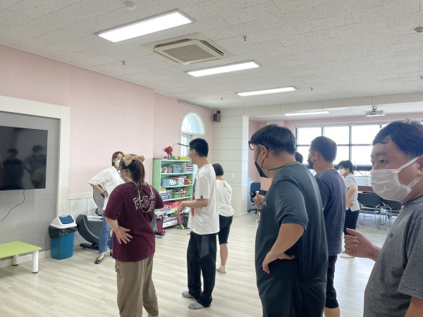 2021. 07. 28. 라인댄스 페이지 정보 작성자 이하영 작성일21-07-29 10:17 조회1,658회 댓글0건 관련링크 본문 라인댄스 프로그램을 진행하였습니다.새로운 음악으로 동작을 배워가며 익혀보았습니다.신나게 참여하시는 모습이 보였습니다.라인댄스는 항상 이용인들에게 인기가 많은 프로그램입니다.우리 몸속에 있는 흥을 깨워주며 무더운 여름에도 움직일 수 있다는 것이큰 행복입니다. ^^ 댓글목록 등록된 댓글이 없습니다. 이전글 다음글 목록