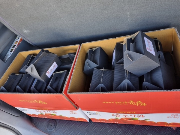 충주시우리음식사랑회에서 이용인들과 직원들을 위해 충주사과와 쌀로 만든 케익과 파이를 선물해 주셨습니다.