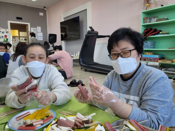 2022. 01. 28. 명절 프로그램 페이지 정보 작성자 이하영 작성일22-01-28 15:44 조회1,164회 댓글0건 관련링크 본문 설날을 맞이하여 윷놀이를 하며 명절 분위기를 느껴보았습니다. 오후에는 명절음식 전을 만들며 본인이 원하는 재료를 마음껏 넣어보았습니다.센터 내에서 이용인분들이 명절에는 무엇을 하는지에 대한 것도 알아볼 수 있었으며, 가정에서 가족들과 같이 행복한 명절을 보낼 수 있도록 선물도 하나씩 드리며 행사를 마무리하였습니다. 댓글목록 등록된 댓글이 없습니다. 이전글 다음글 목록