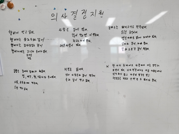 2022. 04. 21. 의사결정지원 페이지 정보 작성자 이하영 작성일22-04-21 15:24 조회1,068회 댓글0건 관련링크 본문 의사결정지원 프로그램으로 다른 사람들 앞에서 본인의 의견을 자유롭게 이야기할 수 있도록 프로그램을 진행하였습니다. 댓글목록 등록된 댓글이 없습니다. 이전글 다음글 목록
