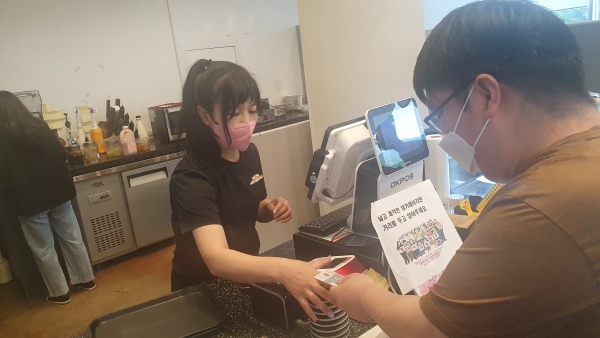 2022.04.23. 자립생활지원_카페이용하기 및 산책 페이지 정보 작성자 이재호 작성일22-04-23 23:02 조회1,066회 댓글0건 관련링크 본문 2022.04.23. 자립생활지원_카페이용하기 및 산책 주말 센터이용인들과 함께 자립생활지원활동으로 카페 이용과 산책을 다녀왔습니다. 나른한 주말 오후 이용인들 모두 들뜬 마음으로 센터를 벗어나 근처 공원으로 향했습니다. 카페에 들려 자신이 원하는 음료를 고르고 계산도 해보며 여러가지 외부 활동을 해보았습니다. 각자 음료를 포장해 나와 바로 옆 공원에서 사진도 찍고 이런저런 이야기를 나누며 평범하지만 소중한 일상을 보내고 돌아왔습니다.^^ 댓글목록 등록된 댓글이 없습니다. 이전글 다음글 목록