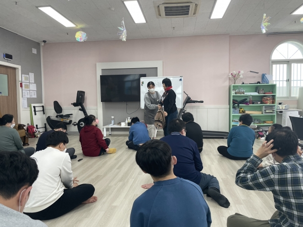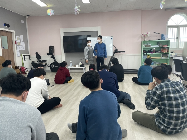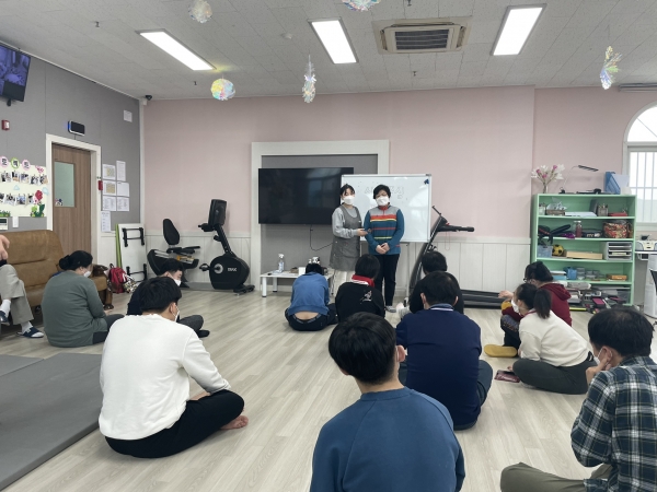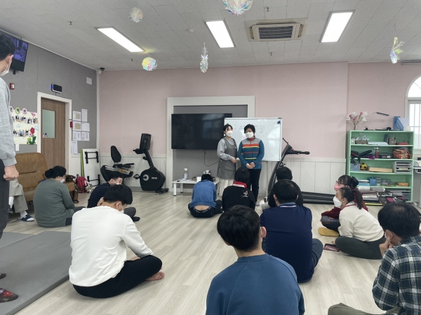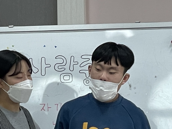 2022. 03. 23. 사람중심실천 (PCP) 페이지 정보 작성자 이하영 작성일22-03-23 17:16 조회1,033회 댓글0건 관련링크 본문 사람중심실천 프로그램 시간에는 첫시간이여서본인 소개를 할 수 있도록 하였습니다.센터 내에서 이름은 알고 있지만 좋아하는 것이 무엇인지 싫어하는 것이 무엇인지 모른채 같이 있는 경우가 많습니다.같이 이야기하며 서로 알아가는 시간이 중요하다고 생각이 되어 앞에 나가서 발표도 같이 할 수 있도록 지도하였습니다. 댓글목록 등록된 댓글이 없습니다. 이전글 다음글 목록