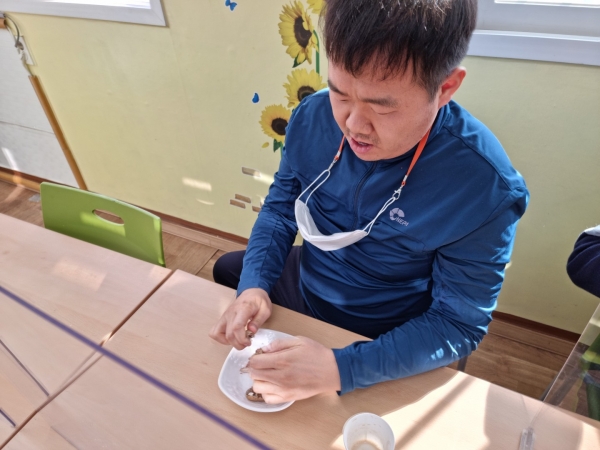 2022. 02. 15. 정월대보름 부럼까기 페이지 정보 작성자 최인규 작성일22-02-15 18:44 조회1,042회 댓글0건 관련링크 본문 정월대보름을 맞이하여 땅콩, 호두 등 여러가지 견과류를 이용해 부럼까기를 진행했습니다이번 부럼까기를 통해 2022년의 액운이 사라지고 좋은일만 가득했으면 좋을 것 같습니다. 댓글목록 등록된 댓글이 없습니다. 이전글 다음글 목록