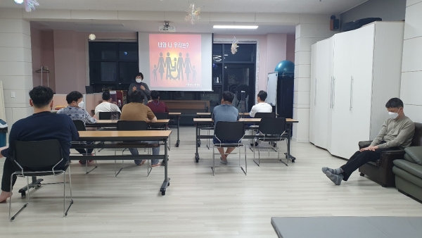 2022.02.15. 단기보호 성교육 페이지 정보 작성자 이재호 작성일22-02-15 20:23 조회1,004회 댓글0건 관련링크 본문 1분기 단기보호 이용인 성교육을 실시하였습니다. 퇴근 후 단기보호 이용인들이 다목적실에 모여 실시하였으며, '너와 나', '다름과 차이'를 중심으로 하여 인권을 알아보고 이에 따른 성교육을 실시하였습니다. 댓글목록 등록된 댓글이 없습니다. 이전글 다음글 목록