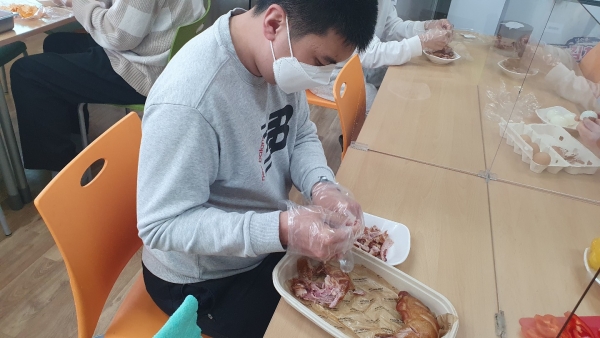 2022.02.20. 주말요리활동 페이지 정보 작성자 이재호 작성일22-02-20 19:19 조회1,063회 댓글0건 관련링크 본문 이번 주말 요리활동으로 치킨마요덮밥을 만들었습니다. 이마트에서 장을 보고 직접 음식을 만들어 보았습니다. 주말을 이용해 장보기와 기타 음식 준비는 물론 밥짓기, 설거지 등 자립생활에 필요한 여러가지 활동을 하였습니다. 댓글목록 등록된 댓글이 없습니다. 이전글 다음글 목록