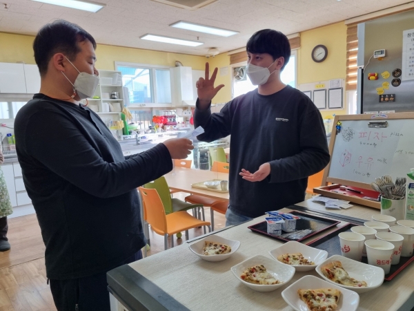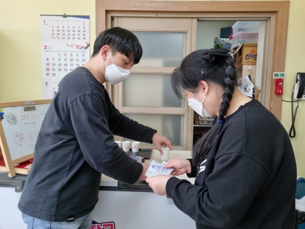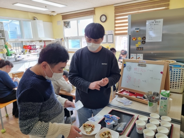 2022. 02. 08. 금전교육 페이지 정보 작성자 이하영 작성일22-02-08 15:32 조회1,220회 댓글0건 관련링크 본문 금전교육을 진행하였습니다.금일에는 피자와 우유를 가상화폐로 구매할 수 있도록 지도하였습니다.화폐를 계산해보며 구매하기 전 고민하는 다사랑센터 이용인분들~ 최고예요 ♥다음에는 마트, 성충문구, 시장을 방문하여 더 많은 물품을 구입해봅시다^^ 댓글목록 등록된 댓글이 없습니다. 이전글 다음글 목록