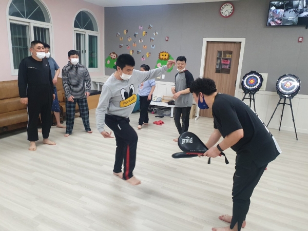 태권도교실 페이지 정보 작성자 안준수 작성일21-05-21 15:41 조회1,798회 댓글0건 관련링크 본문 2021. 04. 05. 월요일태권도교실오늘 저녁 7시, 택권도 강사선생님이 오랜만에 오셨습니다. 강사선생님도 이용인들도 오랜만에 만나 서로 반가운 얼굴로 맞이 하였네요!태권도 활동도 더욱 적극적이고 즐겁게 임한 단기이용인들 이였답니다. 댓글목록 등록된 댓글이 없습니다. 이전글 다음글 목록