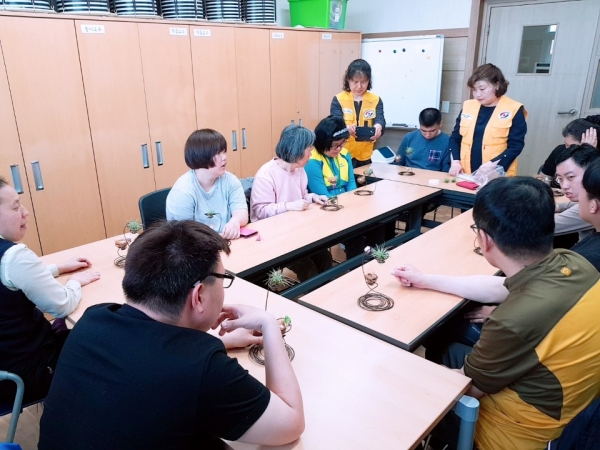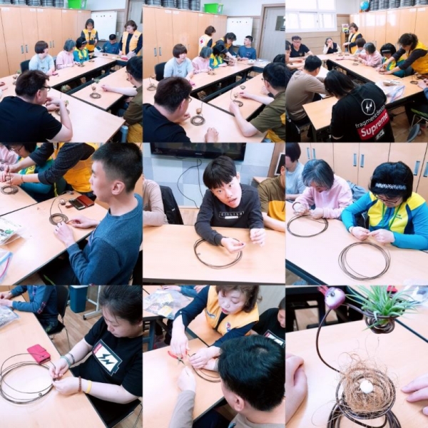 2018.04.19 원예교실 페이지 정보 작성자 이예림 작성일18-04-19 10:22 조회2,114회 댓글0건 관련링크 본문 황사와 미세먼지로 가득한 날씨로 인해 미세먼지를 먹는 다육식물 입게 장식할 철사로 엮은 오브제를 만들었습니다. 인테리어에도 좋고 미세먼지도 잡고 일석이조 입니다. 들꽃적십자 봉사자 및 선생님 방문을 감사드리며 수고하셨습니다. 감사합니다. 댓글목록 등록된 댓글이 없습니다. 이전글 다음글 목록