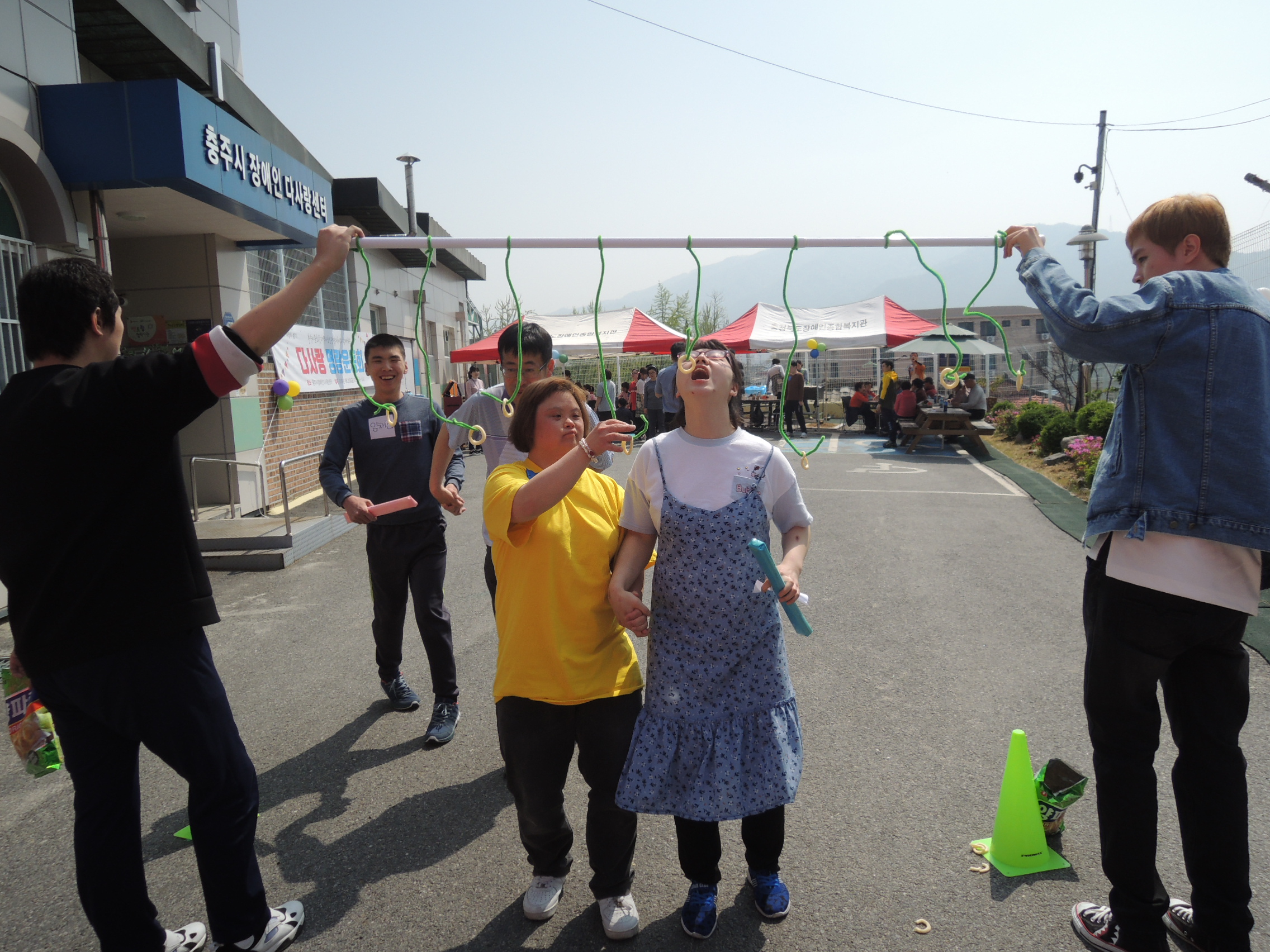 충주시장애인다사랑센터는 4월 20일 금요일 센터 마당에서 이용인과 내외빈 분들이 참여한 가운데 "명랑운동회"를 실시하였습니다.